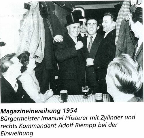 Unter Bürgermeister Imanuel Pfisterer und Kommandant Adolf Riempp wurde das Feuerwehrgerätehaus in der Schulstraße erbaut und am 19. September eingeweiht. Die Fahrzeughalle enthielt zwei große Boxen und eine kleine Box. Viele der umliegenden Wehren bekamen erste Jahre oder Jahrzehnte später ein so geräumiges Magazin.