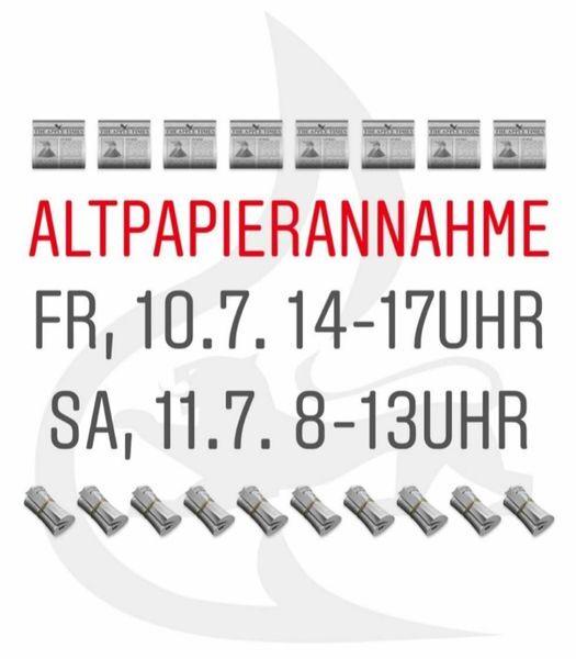Damit sich Euer Altpapier nicht in den Kellern stapelt, bieten wir die Möglichkeit an, zu den bekannten Sammelterminen und einen Tag vorher, Euer Altpapier direkt bei uns am Feuerwehrhaus abgeben zu können.