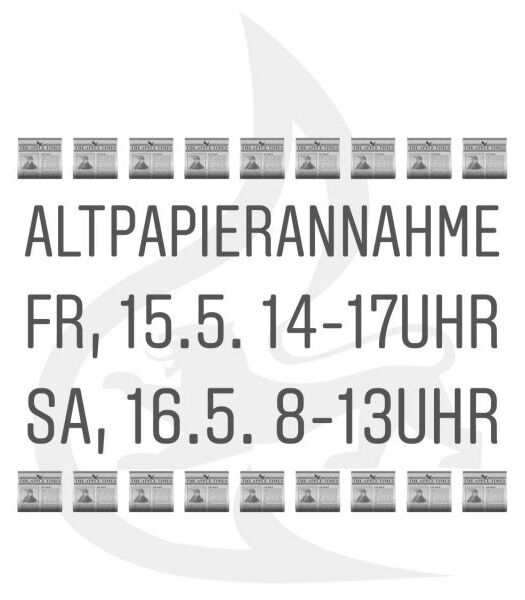 Auf Grund der Corona-Pandemie können wir aus Hygienegründen bis auf weiteres keine Altpapier- und Altkleidersammlung durchführen.