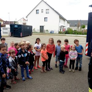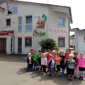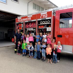 Am Mittwoch, den 12. Juli machten sich die Kinder der Gruppe 1 des Kindergartens In der Au aus Unterensingen mit ihren Erzieherinnen auf den Weg zur Feuerwehr im Ort. Dort empfing sie Feuerwehrkommandant Markus Wereb und führte sie sogleich in den Funkraum und anschließend in den Umkleideraum, wo sich auch die Uniformen der Jugendfeuerwehr befanden. Überraschend schwer war der Feuerwehrhelm auf den Kinderköpfen. Ganz gespannt waren die Kinder nun auf die Feuerwehrfahrzeuge. Sie staunten nicht schlecht, als sie sahen was sich alles in diesem befindet. Außerdem war da auch noch ein Feuerwehrboot zu sehen. Die Ohren hielten sich die Kinder dann ganz fest zu, denn Markus Wereb hat sie schon vorgewarnt, als sie einen lauten Piepston hörten. Dieser ist notwendig, um Kollegen während eines Einsatzes leichter zu finden. Für die Kinder schlüpfte der Feuerwehrkommandant noch in Feuerwehrjacke, Helm, Atemmaske und Sauerstoffgerät. „Wasser marsch“, hieß es anschließend, beim Halten eines echten Feuerwehrschlauches, mit dem jedes Kind auch mal spritzen durfte. Ganz großen Spaß hat die Fahrt mit dem Feuerwehrauto gemacht. Mit Martinshorn und Tatütata ging es eine Runde durch Unterensingen.