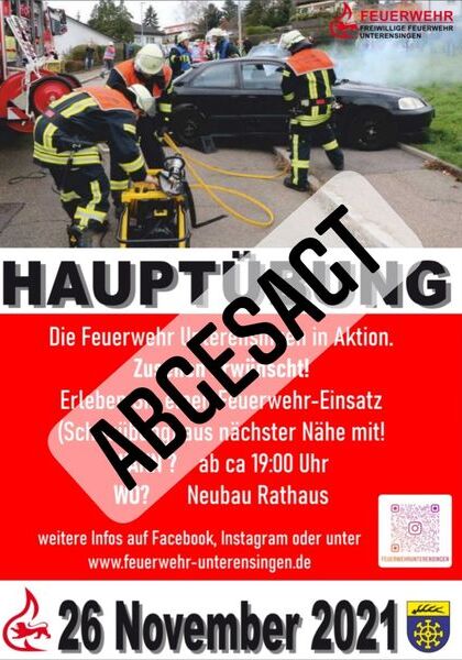 Leider müssen wir wieder auf Anweisung des Innenministerium alle Dienste/ Übungen, die nicht zwingend zur Aufrechterhaltung der Einsatzfähigkeit dienen, einstellen! Auch die Hauptübung wird leider abgesagt. Bei Einsätzen/ Aufenthalt im Feuerwehrhaus ist das Tragen von FFP 2 Masken Pflicht. Auf anschließende Nachbesprechungen nach Einsätze ist ebenfalls zu verzichten!