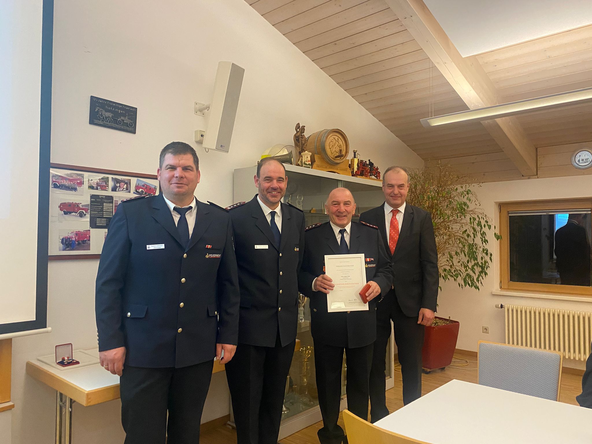 Den emotionalen Abschluss bildete die Ehrung von Jürgen Frieß für 50 Jahre aktiven Feuerwehrdienst. In einer Präsentation wurden seine langjährigen Verdienste als Kommandant, Jugendwart und aktives Mitglied gewürdigt. Sichtlich bewegt nahm er zudem die Ernennung zum Ehrenkommandanten entgegen und beendete seine Dankesrede mit den Worten: